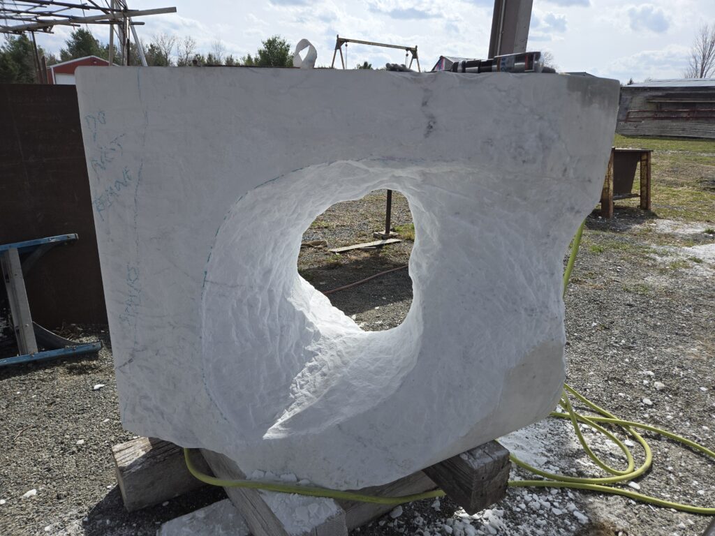 Interestingly, snow sculpting is kind of similar to creating work out in the open here at Franconia. Can you talk about what it feels like to sculpt marble in public?